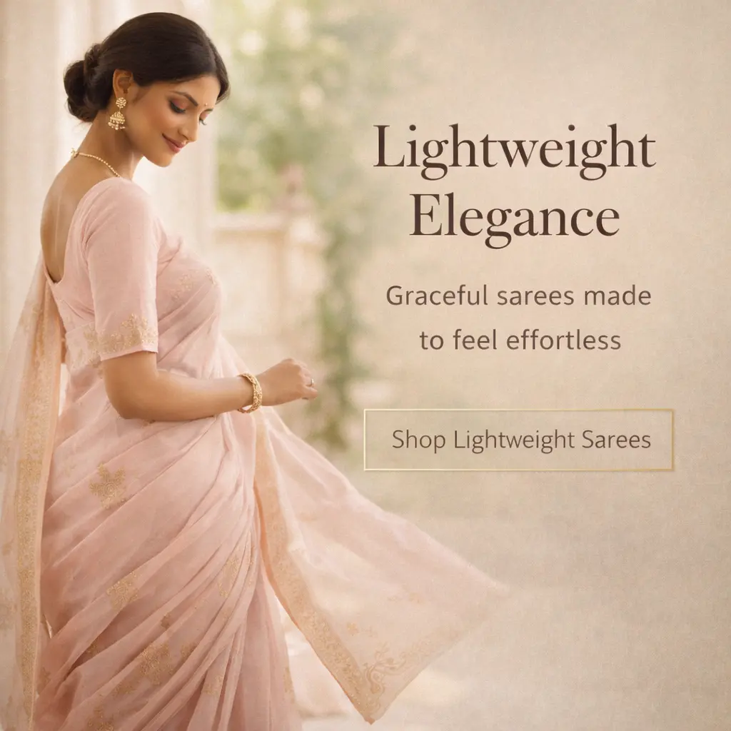 I wore the saree for an entire wedding function and was surprised at how lightweight and comfortable it felt. It draped beautifully and never felt heavy, even after hours. Perfect for long celebrations.