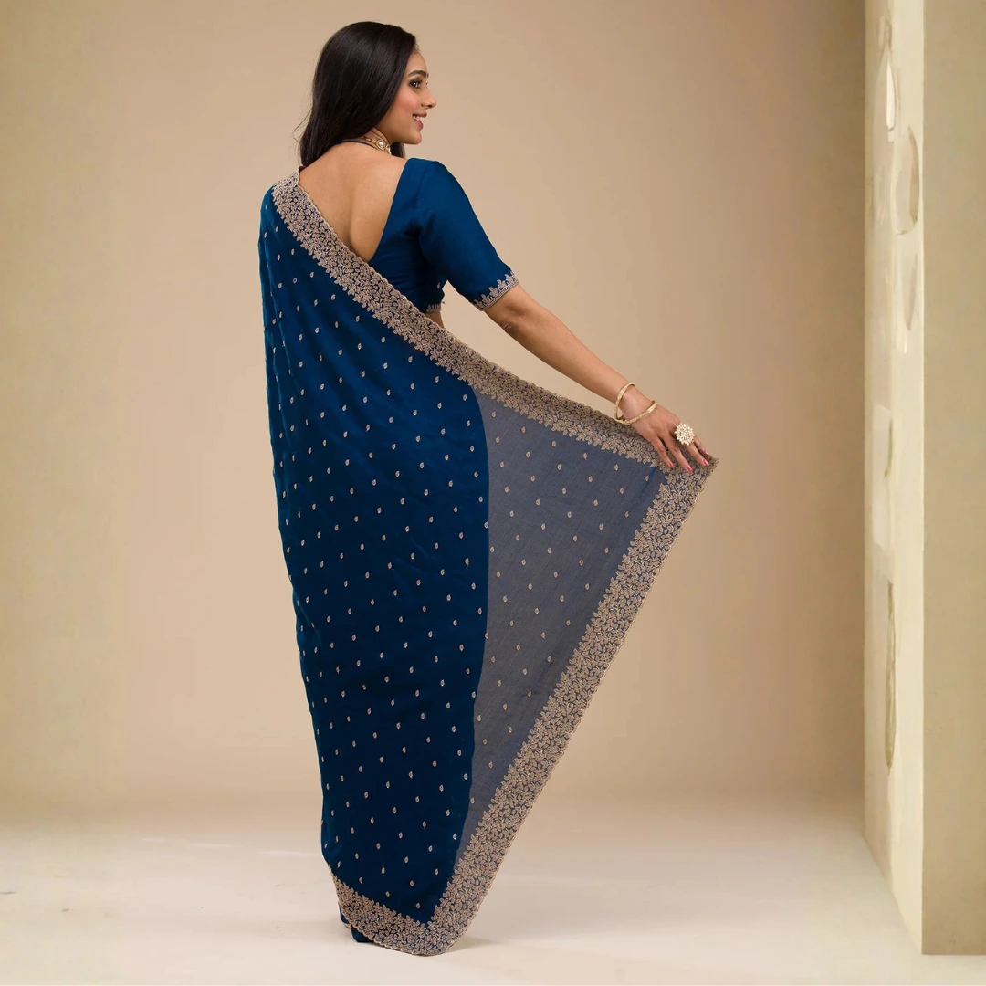 Navy Blue Zariwork Soft Silk Saree