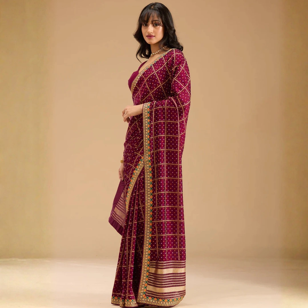 Wine Gold Zariwork Soft Raw Silk Saree – Handwoven Festive Elegance